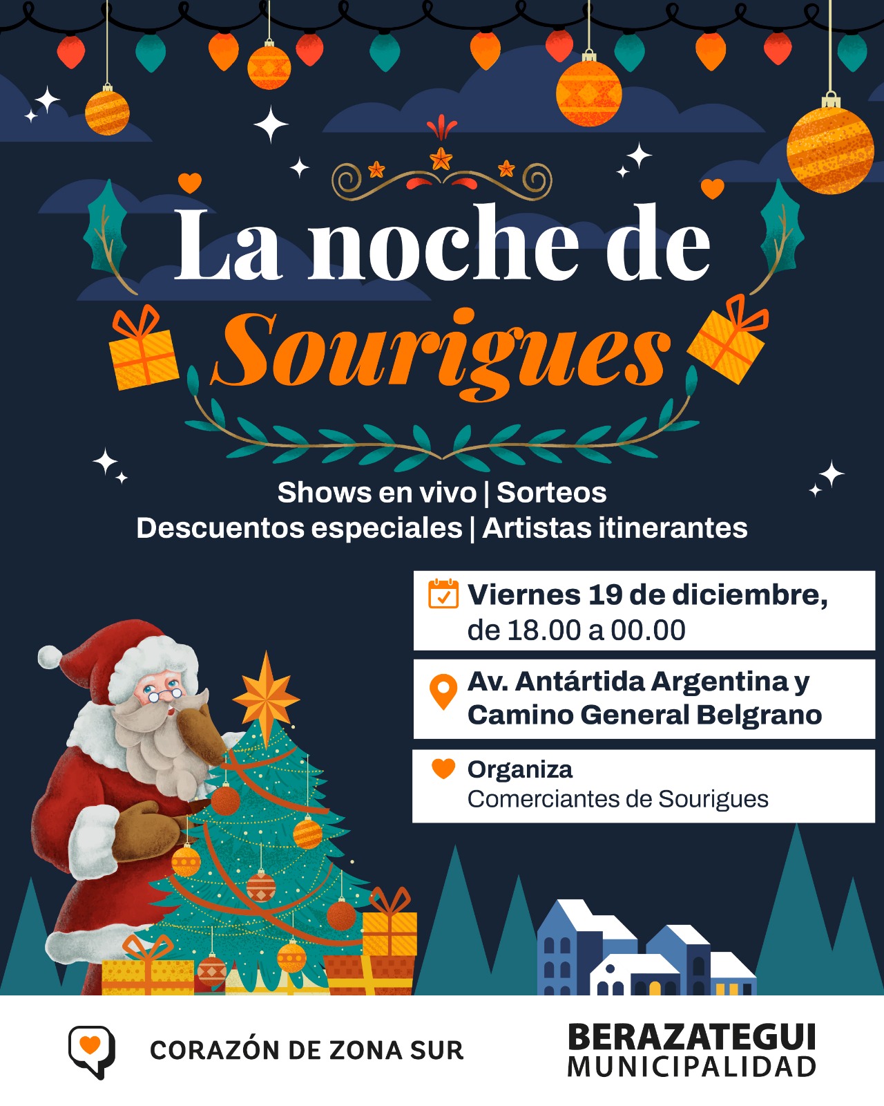 Viernes 19/12, de 18.00 a 00.00 (Av. Antártida Argentina y Camino General Belgrano).